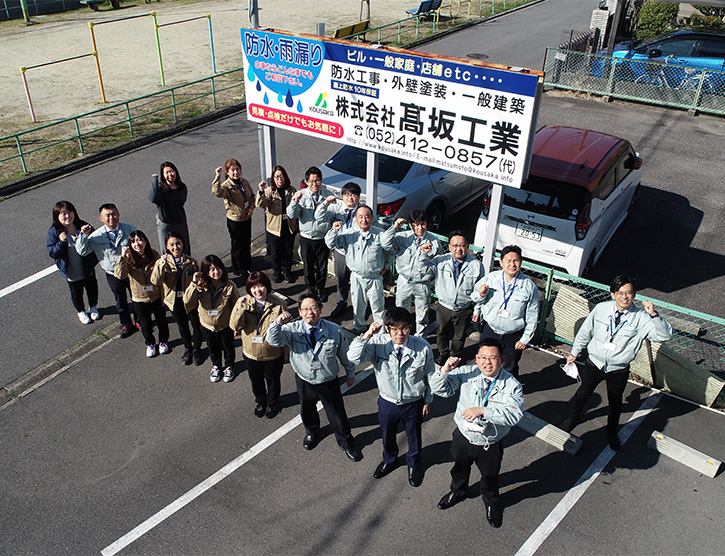| メッセージ | 私たち、株式会社高坂工業は昭和40年に創業し、その後50年以上地域密着に力を注ぎ、東海地方を中心に施工しております。シーリング業界の中ではトップクラスの歴史と実績を持ち、「防水工事」「外壁塗装」「外壁調査」が3本柱です。 シーリングの業界の中ではガラス・サッシ・躯体と多種多様なシーリング工事を手掛けており、シーリングの技術士も多く在籍し、お客様に品質・コスト・工期全てにおいて満足して頂く様受注した工事を社員一丸となって完工に向け日々頑張っています。 近年は、防水工事や塗装工事にも工事の幅を広げ、建物の中で働く人たちが快適に仕事ができる様「笑顔あふれる!安全で快適な空間を!」提供する会社として、環境そしてSDGSを考えた工法でお客様に喜んで頂く事をモットーに取り組んでおります。お客様にも大変喜んでいただいております。協力業者さんを大事にし、動員力があり、決められた工期・品質・安全をきちんと守る会社として名古屋でも高く評価されていると自負しております。 |